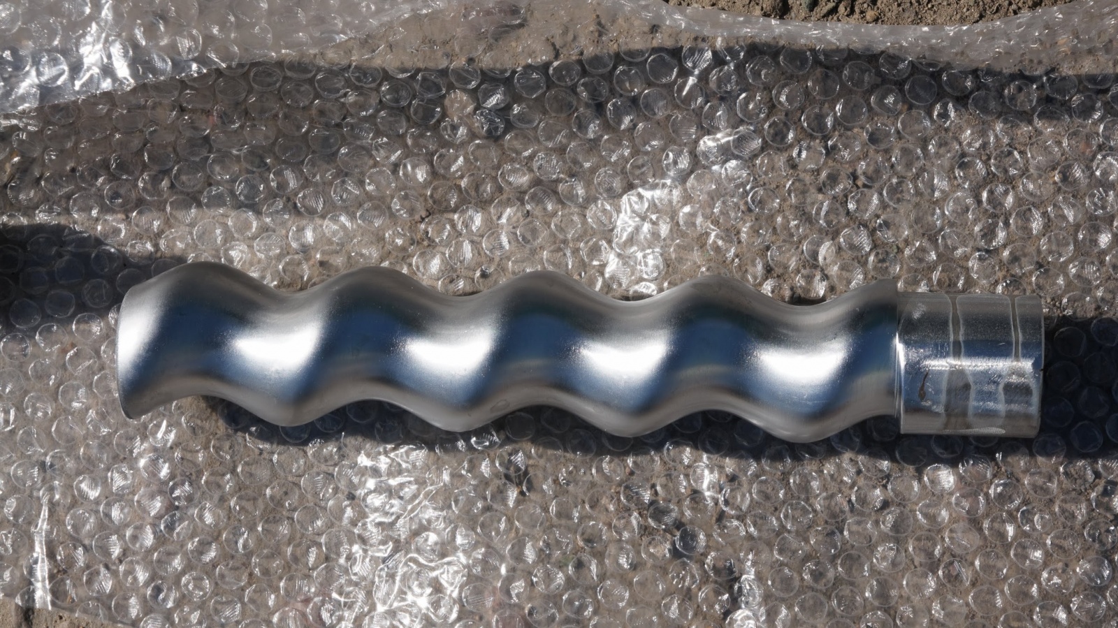 Запасная часть для спрей-машины PTJ-120. Представляет собой резиновый трубчатый элемент с винтовой нарезкой внутри, который одевается на шнек узла подачи  резиновой смеси. В процессе работы спрей-машины шнек совершает вращательные движения, в результате чего, проталкиваемая шнеком смесь, удерживается в рамках резинового кожуха и подается в узел распыления.
